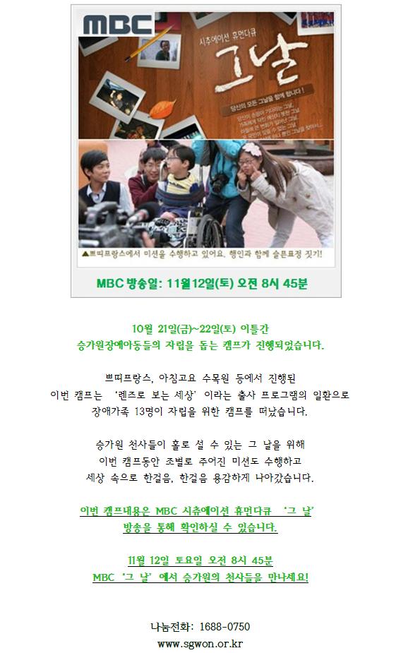 ¡ß MBC¿¡¼ ½Â°¡¿øÀÇ Ãµ»çµéÀ» ¸¸³ª¼¼¿ä!